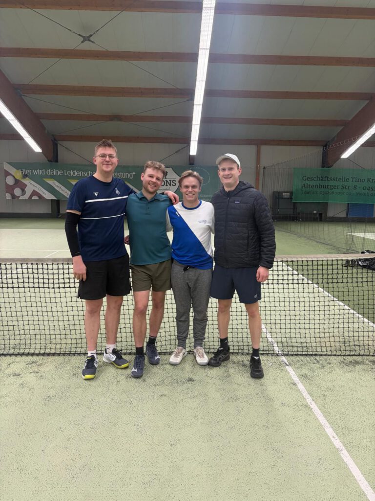 Unsere 1. Herren setzen sich gegen den LVB auswärts souverän mit 12:0 durch. Besonders spannend: Anselm Grau und Sebastian Gruner lieferten sich enge Einzel, die erst im Match-Tie-Break entschieden wurden. Til Pöhnitzsch und Finn Brüggemann gewannen ihre Einzel jeweils in zwei Sätzen. Auch in den Doppeln ließ unser Team nichts anbrennen. Starke Teamleistung – weiter so, Männer!